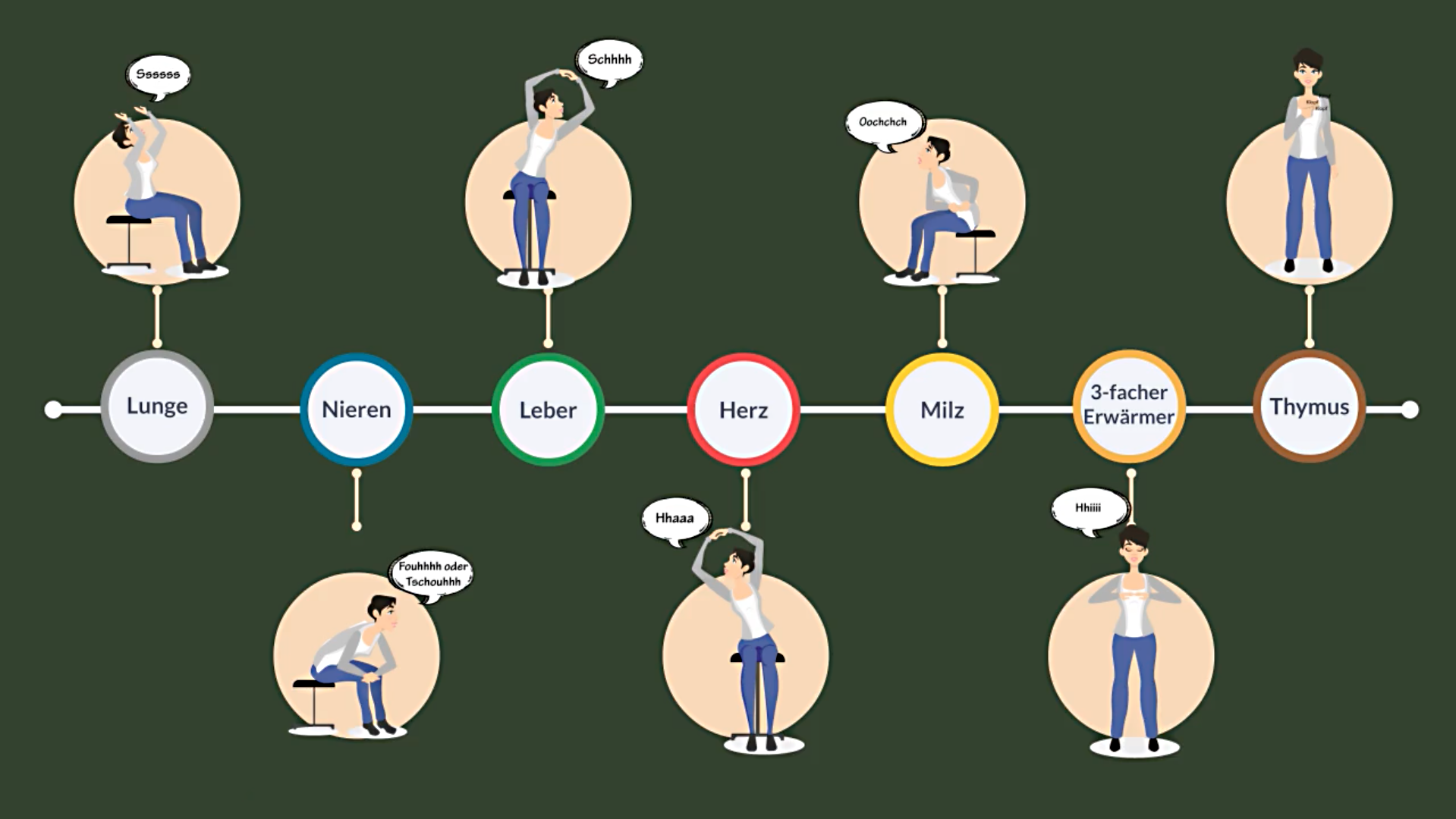 Der Kurs findet einmal in der Woche über einen Zeitraum von 4 Wochen statt. Neben der Übungen und Abläufe erfährst du noch das theoretische Wissen über die fünf Organe und die drei dazugehörenden Handlungsabläufe wie Thymusdrüse, Dreifacherwärmer und Energie sammeln und zentrieren. Dadurch wird es dir nach dem Kurs einfacher fallen, die Signale deines Körpers zu verstehen und mit den Übungen auszugleichen.